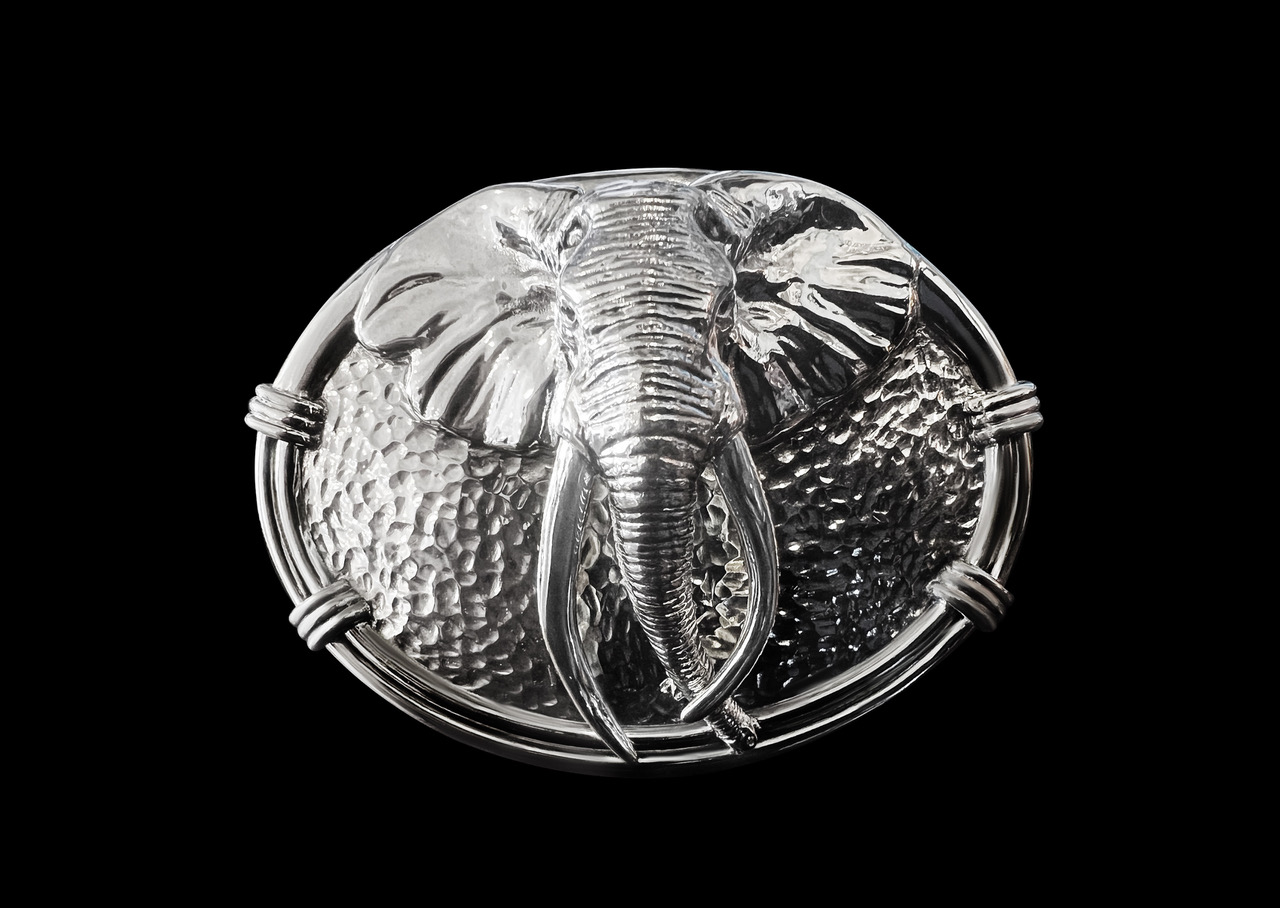 - Sterling Silver belt buckle and lapel pin of Craig the elephant, created and donated by Zimbabwean Forbes Mavros of Patrick Mavros Fine Silver.
